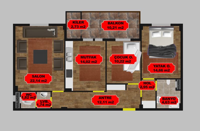 - Mutfak 14,02 m²